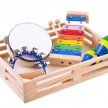 Das Holz Musik Set ist ein großartiges Instrument für Kinder, um daheim Konzerte zu geben oder im kreativen Eck zu spielen. Durch seine strahlenden Farben und die hochwertige Verarbeitung hilft es Kindern, ihr musikalisches Empfinden zu entwickeln.