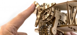 Der Bausatz besteht aus hochwertigem Birken-Sperrholz und wird ohne Klebstoff oder Werkzeuge zusammengebaut. Die Abmessungen des fertigen Modells betragen ca. 16,1 x 14 x 8,8 cm. Ein großartiges Geschenk für Flugzeugliebhaber, das stundenlangen Spaß und Einblicke in mechanische Übersetzungen und Zahnräder garantiert.