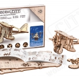 Der mechanische Holzbausatz in Form eines Doppeldeckers bietet ein einzigartiges Design und überraschende Details. Mit modellbauerischer Präzision versetzen Sie sich in luftige Abenteuer an der Seite von Luftfahrtpionieren wie Antoine de Saint-Exupéry. Dieses Modell wird von Gummibändern mit einstellbarer Beschleunigung angetrieben, die den Propeller drehen und dem Flugzeug ermöglichen, auf einer ebenen Fläche zu beschleunigen.