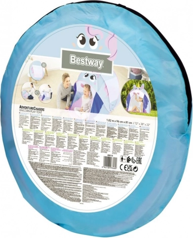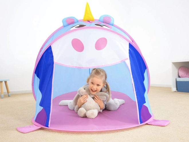 Entdecken Sie die Magie des fantasievollen Spiels mit dem Spielzelt in Einhornform, das Kinder mit fröhlichen Farben und einem einladenden Design begeistert. Das Zelt baut sich in kürzester Zeit von selbst auf und ist damit bereit für Spaß zu Hause, auf der Terrasse, im Garten oder am Wasser. Das strapazierfähige Polyestermaterial und die seitlichen Mesh-Paneele sorgen für gute Luftzirkulation und Übersicht für die Eltern.