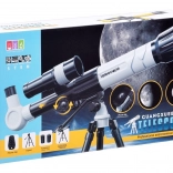 Dieses leichte und einfach zu transportierende Kinderteleskop ist eine großartige Wahl für junge Astronomiebegeisterte. Das optische System vom Typ Linsenteleskop mit schrägem Spiegelprisma sorgt für höheren Kontrast und eine bessere Korrektur von Abbildungsfehlern, sodass Details auf der Mondoberfläche klarer sichtbar werden. Drei austauschbare Okulare bieten eine Vergrößerung bis 40x – ideal für die ersten Schritte in die Himmelsbeobachtung.