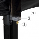 Die Sprungfläche aus hochwertigem Polypropylen ist mehrfach vernäht (bis zu 8 Nähte) und mit oxidierten Federn ergänzt, die von einem Schutzrand abgedeckt werden. Stabilität gewährleisten U‑Füße mit Schrauben, die von innen an der Konstruktion montiert sind – die Außenseite bleibt glatt und sicher. Im Paket finden Sie außerdem eine Leiter, Erdanker mit Spanngurten und eine wasserabweisende Abdeckung für einfache Nutzung und Pflege.