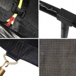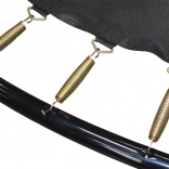 Die Sprungmatte aus Polypropylen mit verstärkter Naht (bis zu 8 Nähte) sorgt zusammen mit oxidierten Federn für einen elastischen Rücksprung, lange Lebensdauer und Stabilität der gesamten Konstruktion.