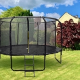 Das robuste Trampolin SkyFlyer mit einem Durchmesser von 426 cm (14 ft) bietet großzügigen Platz zum Springen, für Fitnesstraining und Freizeitspaß. Für Sicherheit sorgen ein hohes Sicherheitsnetz, das mithilfe eines oberen Rings gespannt wird, sowie weich gepolsterte profilierte Pfosten. Der Eingang ist mit Reißverschluss und Schnalle doppelt gesichert – für maximale Sicherheit der Kinder.