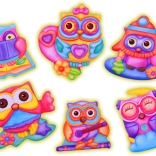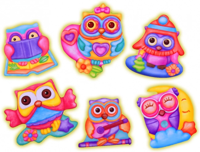 Gestalten Sie bis zu 6 verschiedene Magnete und dekorieren Sie Kühlschrank oder Spielecke mit fröhlichen Eulendesigns in spielerischen Farben.