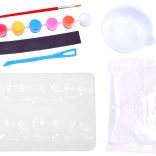 Das Set enthält eine Form, Gips, Farben, Pinsel, Mischbecher, Spachtel sowie Magnetband – einfach Wasser hinzufügen und loslegen.