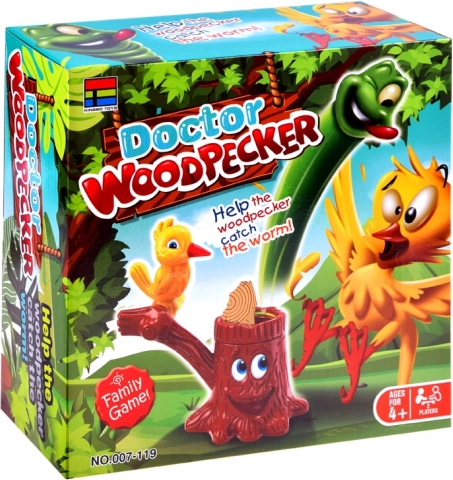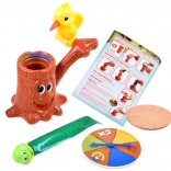 Das Spiel Doktor Specht – kranker Baum ist die ideale Wahl für gemeinsame Abende und Kindergeburtstage. Die Spieler drehen abwechselnd am Glücksrad, stellen den Papierring auf die ausgeloste Farbe ein und „klopfen“ mit dem Specht auf das Papier. Ziel ist es, möglichst viele Treffer zu landen und als Erster das Papier so zu durchbrechen, dass der federnde Wurm aus dem Baum springt.