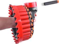 Das runde Magazin fasst bis zu 28 Schaumstoffpfeile, sodass Sie seltener nachladen und länger spielen können. Ideal für intensive Actionduelle.