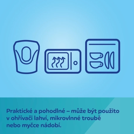 Kann im Flaschenwärmer, in der Mikrowelle und in der Spülmaschine verwendet werden.