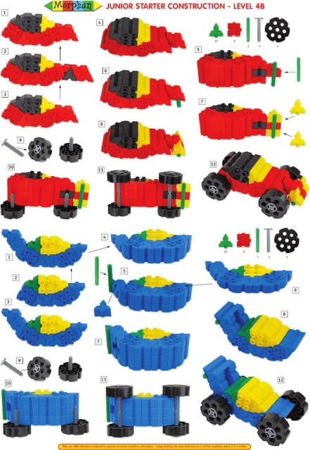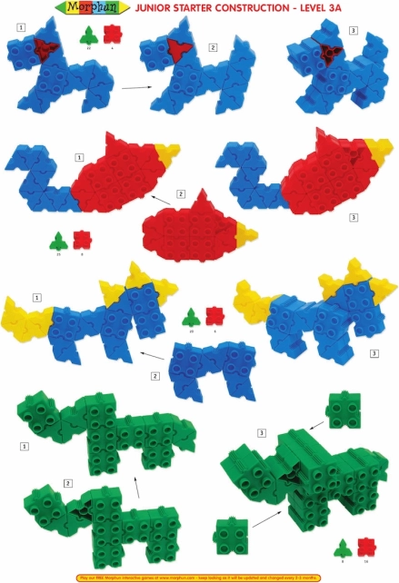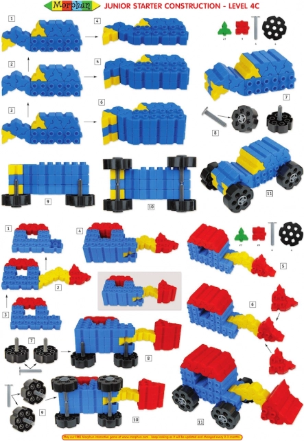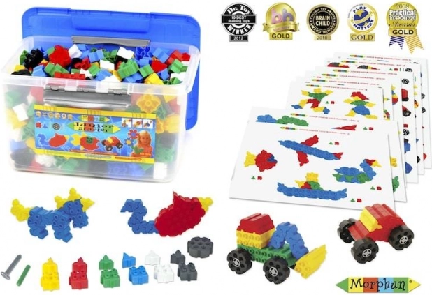 Der Morphun Starter Baukasten kombiniert Elemente klassischer Bausteine und Puzzles – Teile lassen sich übereinander stapeln und seitlich verbinden. Die große Farb- und Formenvielfalt unterstützt natürliche Neugier und die Entwicklung der Kinder. Enthalten sind Räder für fahrbare Modelle sowie übersichtliche Schritt-für-Schritt-Anleitungen, inklusive Vorlagen im Maßstab 1:1 für einen leichten Einstieg.