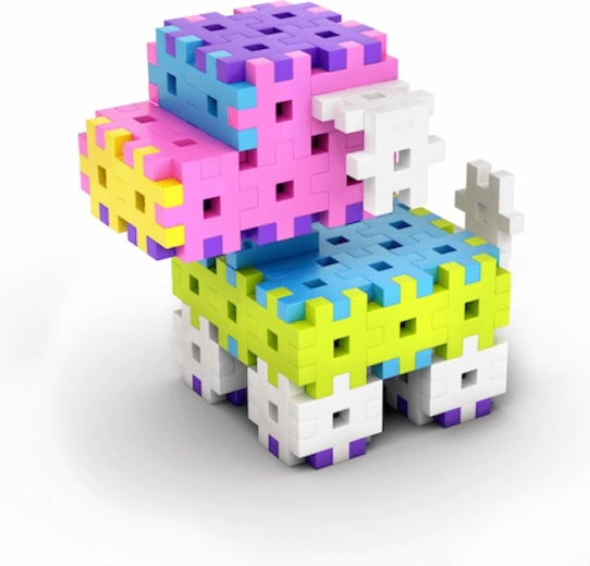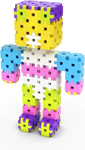 Einheitliche Form und Größe der Teile ermöglichen schnelles, müheloses Bauen. Fertige Werke behalten ihre Form und Kinder können sie sicher transportieren.