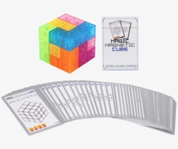 Dank der Magnete lassen sich die Würfel leicht verbinden und ermöglichen die Erstellung einer Vielzahl von Modellen mit Hilfe von 52 Anleitungskarten.