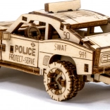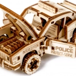 Die Montage erfolgt ohne Kleber und die Teile greifen präzise ineinander. Das Ergebnis ist ein robustes Miniatur-Polizeiauto, das sich sowohl im Regal als auch auf dem Schreibtisch hervorragend macht. Die Marke WOODEN CITY legt zudem Wert auf Ökologie – das Produkt ist plastikfrei verpackt.