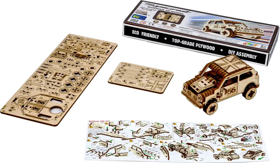 Dieses mechanische 3D-Modell eines Rallyewagens ist die perfekte Wahl für alle Bastelfans. Dank präzisem Laserschnitt aus Birkensperrholz fügen sich die Teile nahtlos zusammen, und Sie genießen angenehme Entspannung sowie die Förderung der Kreativität beim Bauen ohne Kleber. Das fertige Modell überzeugt mit realistischen Details – vom Kühlergrill bis zur Nummer auf den Türen – und wird zum stilvollen Blickfang im Regal oder Arbeitszimmer.
