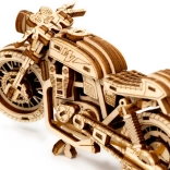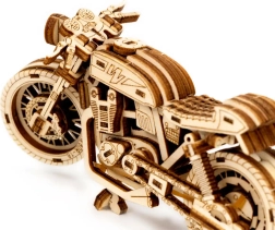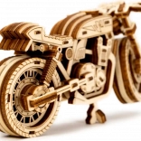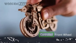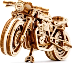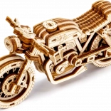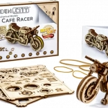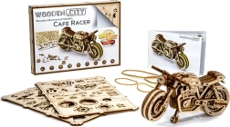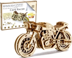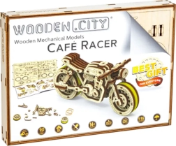 Das Café-Racer-Motorrad von WOODEN CITY ist ein detailreich ausgearbeitetes Holzmodell im Maßstab 1:16, das Ihren Schreibtisch oder Ihre Vitrine belebt. Dank Gummibandmotor und Rückzug-Mechanismus bewegt sich das Modell vorwärts und rückwärts, erreicht eine Fahrstrecke von etwa 1 Meter und gewährt Einblick in die echte Mechanik der Zahnräder.