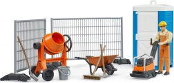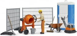 Betonmischer, Rüttelplatte, Schubkarre, Werkzeuge, Absperrungen und eine mobile Toilette sorgen für authentische Szenen und fördern kreatives Spielen.