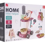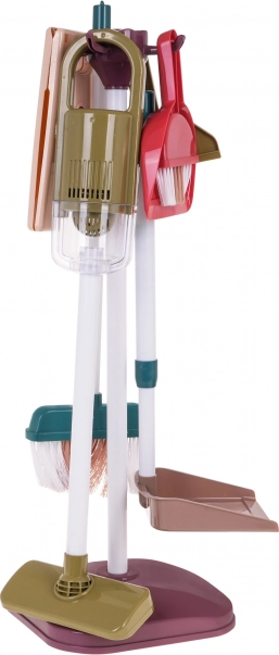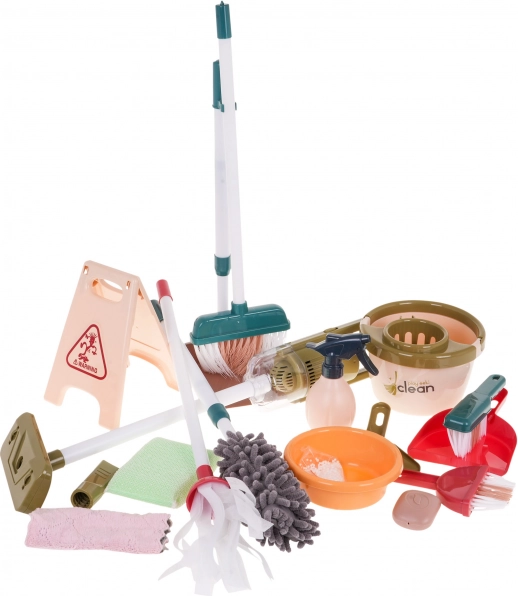 Das Kinder-Reinigungsset umfasst Werkzeuge wie Mop, Bürste, Besen und einen kleinen Staubsauger, die echtes Werkzeug nachahmen und dem Spiel Realitätsnähe verleihen.