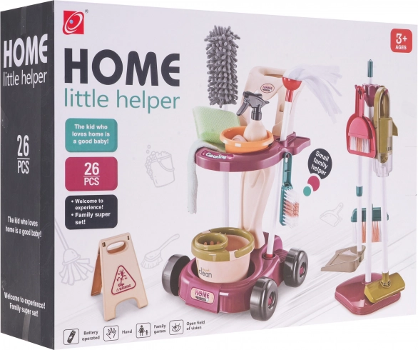 Dieser Kinder-Putzwagen ist das perfekte Hilfsmittel für alle kleinen Helfer, die bei den Reinigungsaktivitäten ihrer Eltern mitmachen möchten. Das Set enthält 26 verschiedene Teile, darunter einen Wagen mit Rollen, der eine einfache Handhabung und Stauraum für sämtliches Zubehör bietet. Ebenfalls enthalten ist ein Ständer für Bürsten und Werkzeuge, der kompaktes Verstauen unterstützt.