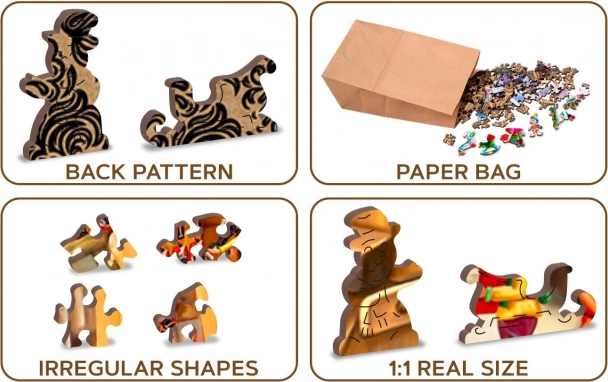 Das Zusammensetzen eines Puzzles mit unterschiedlich geformten Teilen ist anspruchsvoller und stellt eine größere Herausforderung dar als ein klassisches Puzzle. Außerdem ist das Puzzle beidseitig: Sie können entweder nach dem Bild (Vorderseite) oder nach der Form (Rückseite mit Muster) puzzeln. Die Marke WOODEN CITY vergisst neben dem einzigartigen Puzzlekonzept auch die Ökologie nicht – bei diesen Produkten finden Sie keinerlei Plastikverpackungen. Mit einzigartig geformten Teilen, die je nach Motiv Thema bekannte Bauwerke, Gegenstände oder Tiere darstellen. Höherer Schwierigkeitsgrad bei geringerer Teilezahl – das Puzzeln mit unterschiedlich geformten Teilen ist anspruchsvoller.