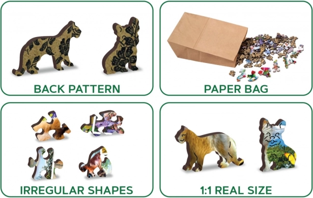Das Zusammenbauen eines Puzzles mit unterschiedlich geformten Teilen ist anspruchsvoller und stellt eine größere Herausforderung dar als ein klassisches Puzzle. Außerdem ist das Puzzle beidseitig: Sie können entweder nach dem Bild (Vorderseite) oder nach der Form (Rückseite mit Muster) puzzeln. Die Marke WOODEN CITY vergisst neben dem einzigartigen Puzzlekonzept auch die Ökologie nicht – bei diesen Produkten finden Sie keinerlei Kunststoffverpackungen. Mit einzigartig geformten Teilen, die je nach Motiv bekannte Bauwerke, Gegenstände oder Tiere darstellen. Höherer Schwierigkeitsgrad bei geringerer Teileanzahl – das Puzzeln mit unterschiedlich geformten Teilen ist anspruchsvoller.