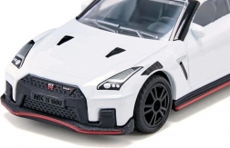 Der Nissan GT-R Nismo ist ein supersportliches Fahrzeug für alle, die beeindruckenden Stil und Leistung lieben. Das Topmodell von Nissan mit über 600 PS verspricht reine Aerodynamik und Nervenkitzel. Dank der klassischen weißen Karosserie, der Sportfelgen mit gummierten Reifen, dem Heckspoiler und den ausgefeilten Designdetails wie der roten Linie entlang des Randes verwandelt dieses Auto sowohl die Straße als auch den Kinderzimmerboden in eine Rennstrecke.