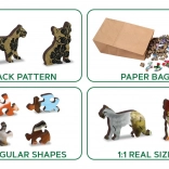 Speziell geformte Teile in Form von Tieren und Gegenständen beleben das Puzzeln. Die Rückseite mit dekorativem Muster sorgt für eine neue Herausforderung.
