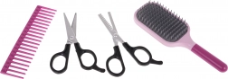 - Föhn, - austauschbare Düse für Föhn mit Diffusor, - austauschbare Düse für Föhn mit Konzentrator, - Haarglätter, - Schere, - Effilierschere, - Kamm, - Haarbürste, - Föhnständer. |