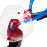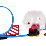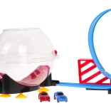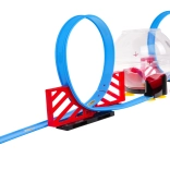 Bauen Sie Ihre eigene Rennarena mit zweispuriger Strecke, zwei Loopings und einer zentralen transparenten Kugel. Dank zweier unabhängiger Strecken können Kinder echte Geschwindigkeitsduelle austragen. Durch Zurückziehen des Autos wird der Pull-Back-Antrieb aktiviert, das Auto startet in den Looping, rast in die Kugel und führt darin spektakuläre Rotationen aus.
