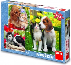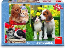 Eine niedliche Dreierpackung Puzzles mit Motiven von Kätzchen und Welpen bringt Spaß und Lernen in einem. Jedes Puzzle hat 55 Teile und besticht durch farbenfrohe, detailreiche Aufnahmen der tierischen Freunde. Beim Zusammensetzen trainieren Kinder ihre Feinmotorik, räumliche Vorstellungskraft und Konzentrationsfähigkeit. Die Puzzles bestehen aus robuster Pappe und werden in der Tschechischen Republik hergestellt.