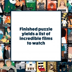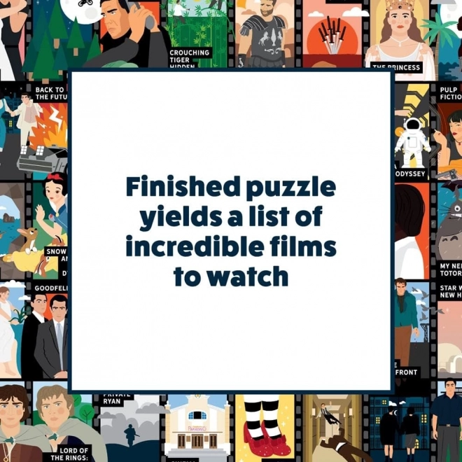 Das Puzzle enthüllt nach und nach eine Auswahl von fünfzig Kulttiteln verschiedener Genres – perfekte Inspiration für Ihre Film-Marathons.