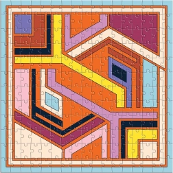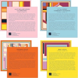 Jedes Puzzle zeigt ein anderes ikonisches Haus von FRANK LLOYD WRIGHT, inspiriert vom System der Textilblöcke – La Miniatura, Community Playhouse, Freeman House und Ennis House.