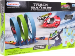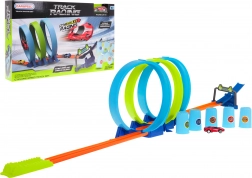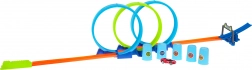 Diese farbenfrohe Rennbahn bietet adrenalingeladene Fahrten mit dreifachem Looping, einem Sprung von der Rampe und dem Umstoßen von Hindernissen. Das Auto mit Pull-Back-Antrieb lässt sich leicht aufziehen und fährt nach dem Loslassen durch die Loopings weiter bis ins Ziel. Ideal für Kinder ab 6 Jahren, die Geschwindigkeit, Stunts und Wettkämpfe lieben.