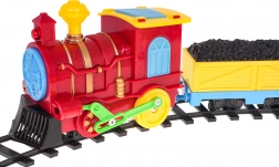Entdecken Sie die unterhaltsame interaktive Lokomotive für Kinder ab 3 Jahren mit Lichteffekten, realistischen Geräuschen und beweglichen Elementen. Enthalten sind eine Rundstrecke, 2 Waggons (mit Kohle und mit Baum) sowie Verkehrszubehör. Die Lokomotive fährt vorwärts, das Führerhaus öffnet sich während der Fahrt und im Inneren erscheint eine robotische Figur – ein tolles Spielzeug zur Förderung von Fantasie und Motorik.