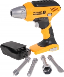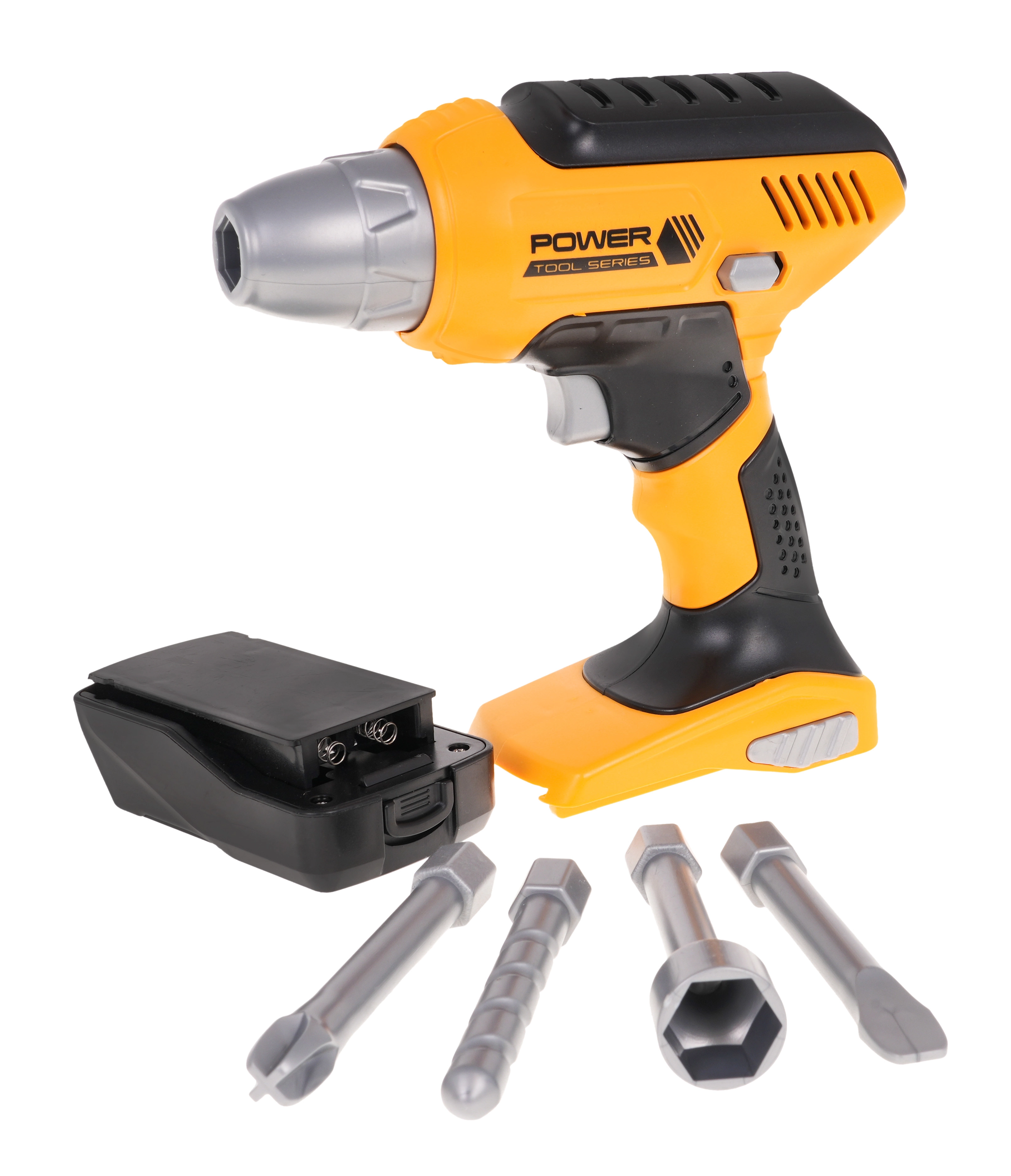 - Die Bohrmaschine sieht nicht nur echt aus, sondern funktioniert auch mit auswechselbaren Bits und zwei Rotationsrichtungen.