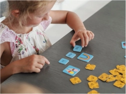 Das Spiel Silbe für Silbe spricht die Sinne der Kinder an: