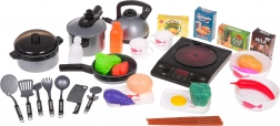 Dieses erstaunliche Küchenset enthält alles, was ein kleiner Koch benötigen könnte. Ein Induktionsherd, der mit drei AA-Batterien betrieben wird und realistische Brat- und Kochgeräusche ermöglicht. Sichere Plastikelemente wie Töpfe, Pfannen und weiteres Zubehör sind ideal für Kinderspiele, ohne scharfe Kanten und Verletzungsgefahr. Das Set enthält verschiedene Lebensmittelimitationen, einschließlich Eiern, Fisch und Gemüse, die die Authentizität des Spiels erhöhen.