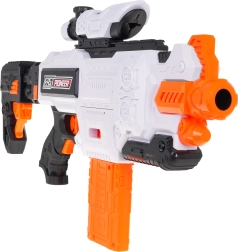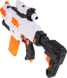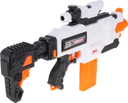 Dieses Spielzeug mit futuristischem Look bietet realistische Spielerlebnisse mit zusätzlichem Sucher und erweiterter Schulterstütze.