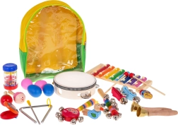 Wir präsentieren ein großes Holz-Musikset für Kinder ab 2 Jahren. Dieses farbenfrohe und sichere Set enthält 23 verschiedene Teile, alle ordentlich in einem praktischen Rucksack verstaut, der sich leicht transportieren lässt.