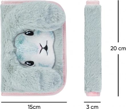 BAAGL Bunny ist ein stylisches einlagiges Federmäppchen mit zwei Klappen, das niedliches Design und praktische Organisation verbindet. Der superweiche Plüschbezug in Grau-Rosa mit Häschen und Öhrchen ist angenehm anzufassen und wird von Kindern sofort geliebt.