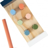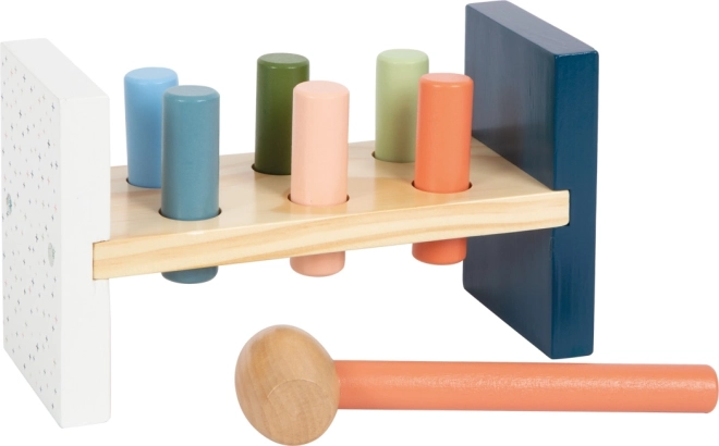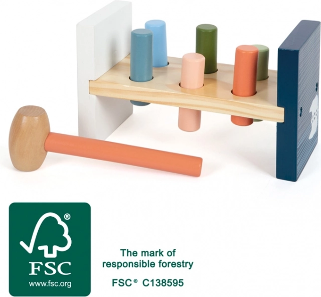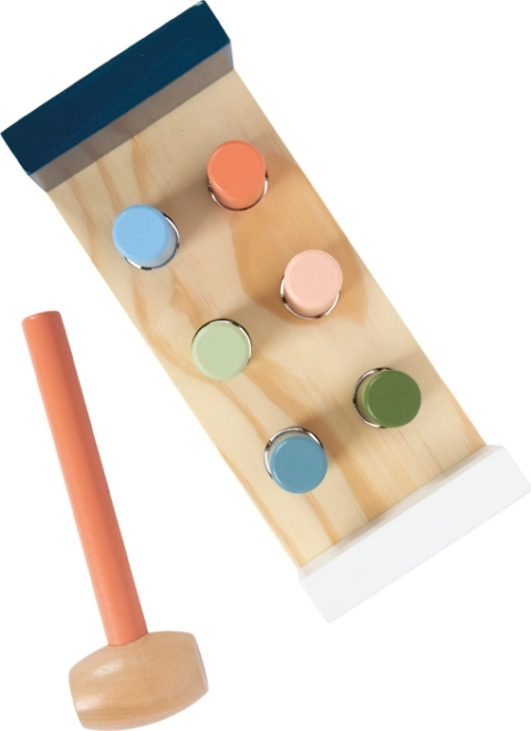 Das Spiel fördert Geduld, Konzentration und stärkt die Sicherheit bei Schlagbewegungen. Dank der robusten Ausführung und glatten Kanten ist es sicher für kleine Kinderhände, während der natürliche Look und Pastellfarben in jedes Kinderzimmer passen.