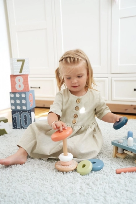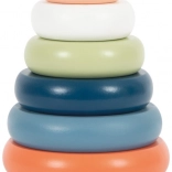 Sechs Ringe in unterschiedlichen Größen fördern den präzisen Griff, das Sortieren und die Hand-Auge-Koordination beim spielerischen Aufstecken.