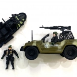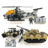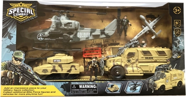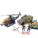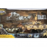 Das Set enthält diverse Militärfahrzeuge, darunter einen Geländewagen und einen Panzer, ideal für Erkundungsmissionen.