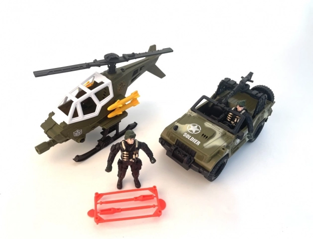 Das Militär-Set mit Fahrzeug und Hubschrauber ist die ideale Wahl für Kinder, die gerne militärische Umgebungen erkunden. Dieses Set umfasst ein Fahrzeug, das für den Geländeeinsatz bereit ist, und einen Hubschrauber, der Sie schnell dorthin bringt, wo es nötig ist. Zwei Soldatenfiguren beleben Ihr Spiel mit echtem militärischen Einsatz.