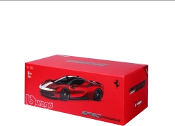 Das Modell Ferrari SF90 Stradale Assetto Fiorano 2020 von Bburago fängt den Charakter des ersten Plug-in-Hybriden von FERRARI originalgetreu ein. Die spezielle Assetto-Fiorano-Edition ist auf maximale Performance und Fahreigenschaften ausgerichtet – diese Merkmale spiegeln sich auch in der präzisen Modellumsetzung wider. Die rote Lackierung mit kontrastierenden Details betont das sportliche Design und die aerodynamischen Linien.