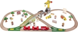 Diese reich ausgestattete Holzeisenbahn bietet Kindern stundenlangen, kreativen Spielspaß. Die Teile sind glatt verarbeitet und mit sicheren Farben lackiert. Die Zugkompositionen verbinden sich mit starken Magneten, sodass sie auch beim Anheben zusammenhalten. Das Set umfasst Kran, Brücken, Verkehrsschilder, Bäume, Gebäude und Arbeitsfahrzeuge – alles bereit für abwechslungsreiche Szenen.