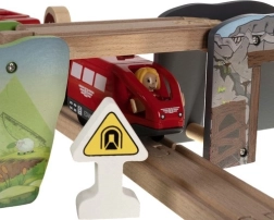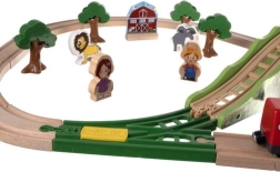 Ein komplettes Set mit Schienen, Brücken, Zug, Kran, Figuren und Zubehör ermöglicht es Kindern, eigene Welten zu erschaffen und immer neue Strecken zu gestalten.