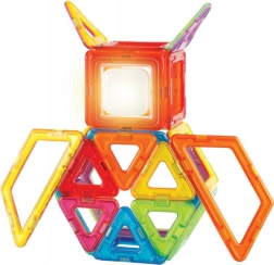 Magformers ist ein weltweit führender Hersteller ungewöhnlicher und origineller magnetischer Bausteine aus hochwertigen Materialien. Jeder Baustein enthält Neodym-Magnete, die sich gegenseitig stark anziehen. Der Dynamische Blitz ist ein Produkt, das sich ideal für die Kleinsten eignet. Dank der 54 Teile im Set lassen sich viele dreidimensionale Konstruktionen bauen. Sie können diese frei zusammenstellen oder sich von der im Set enthaltenen Anleitung inspirieren lassen.