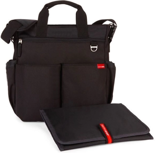 Stilvolle und praktische Wickeltasche für den Alltag mit insgesamt 10 Taschen für perfekte Übersicht, rutschfesten Kinderwagenriemen und patentierten Shuttle Clips zum einfachen An- oder Abnehmen des Schultergurts. Bietet eine Seitentasche für die Flasche, eine Handytasche, Magnet- und Reißverschluss sowie eine gepolsterte Wickelauflage. Hergestellt aus strapazierfähigem Polyester, ohne BPA und Phthalate, geprüft nach EU-Richtlinien.