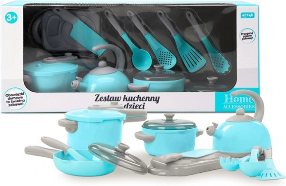 Das designstarke türkis-graue Teekännchen verleiht der Kinderküche Authentizität. Ein beweglicher Deckel und ein bequemer Griff erleichtern die Handhabung beim Spielen.