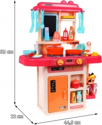 Insgesamt bietet die Küche 42 unterschiedliche Elemente für maximale Kreativität und Spielspaß. Das Set enthält verschiedene Utensilien wie Töpfe, Pfannen und falsche Lebensmittel, die unendliche Möglichkeiten für Rollenspiele bieten.